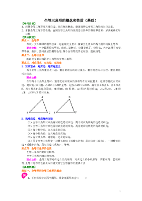 初中8年级(上册)全等三角形的概念和性质(基础)知识讲解.doc