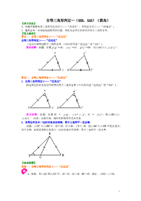初中8年级(上册)全等三角形判定一(SSS,SAS)(提高)知识讲解.doc