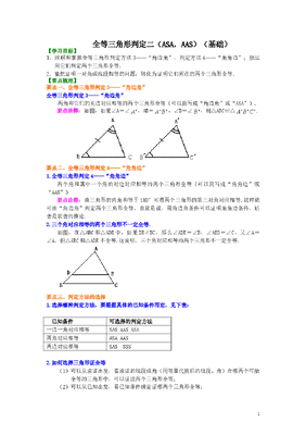 初中8年级(上册)全等三角形判定二(ASA,AAS)(基础)知识讲解.doc