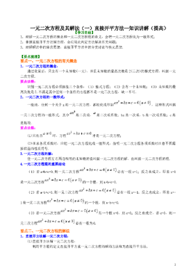 初中数学9年级一元二次方程及其解法(一)直接开平方法—知识讲解(提高).doc