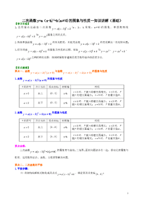 初中数学9年级二次函数y=a(x-h)2+k(a≠0)的图象与性质—知识讲解(提高).doc