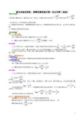 初中数学9年级弧长和扇形面积、圆锥的侧面展开图—知识讲解(基础).doc