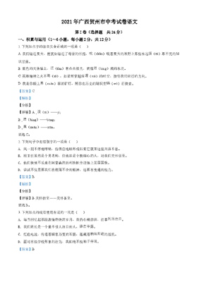 精品解析:广西贺州市2021年中考语文试题(解析版).doc