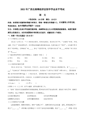 精品解析:广西北部湾经济开发区2021年中考语文试题(原卷版).doc