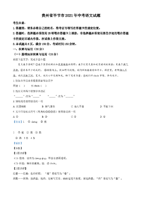 精品解析:贵州省毕节市2021年中考语文试题(解析版).doc