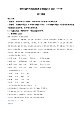 精品解析:贵州省黔西南布依族苗族自治州2021年中考语文试题(解析版).doc