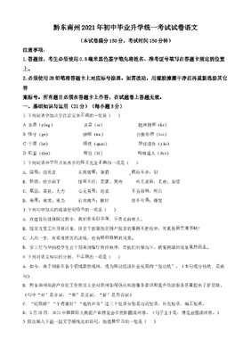 精品解析:贵州省黔东南苗族侗族自治州2021年中考语文试题(原卷版).doc