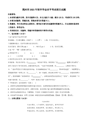 精品解析:湖北省荆州市2021年中考语文试题(原卷版).doc