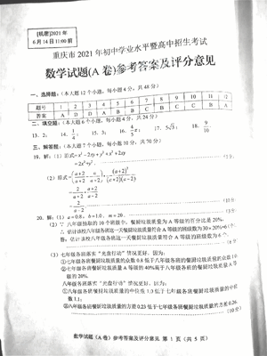 精品解析:2021年重庆市中考数学真题(A卷)答案.pdf