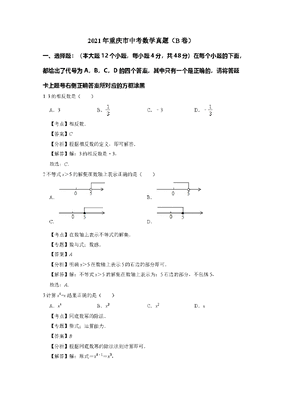 精品解析:2021年重庆市中考数学真题(B卷)解析.doc