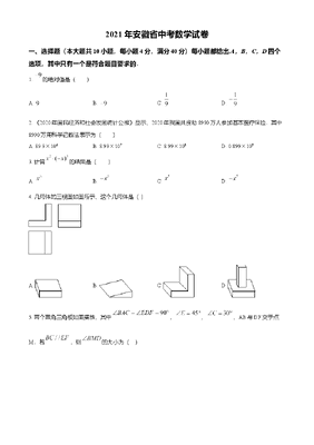 精品解析:安徽省2021年中考数学真题(解析版).doc