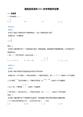 精品解析:湖南省常德市2021年中考数学试卷(解析版).doc