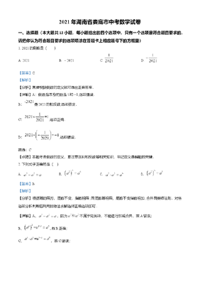 精品解析:湖南省衡阳市2021年中考数学真题(解析版).doc