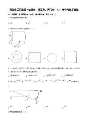 精品解析:湖北省江汉油田(仙桃市、潜江市、天门市)2021年中考数学真题(原卷版).doc