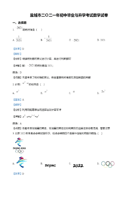 精品解析:江苏省盐城市2021年中考数学试题(解析版).doc