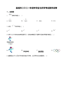 精品解析:江苏省盐城市2021年中考数学试题(原卷版).doc