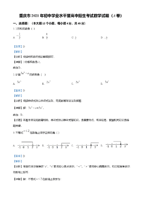 精品解析:重庆市2021年中考数学真题(A卷)(解析版).doc