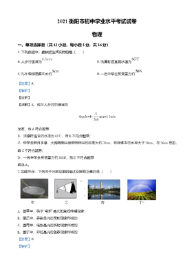精品解析:2021年湖南省衡阳市中考物理试题(解析版).doc
