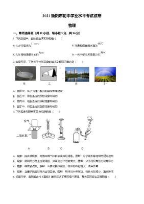精品解析:2021年湖南省衡阳市中考物理试题(原卷版).doc
