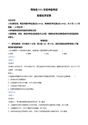 精品解析:2021年青海省中考物理试题(解析版).doc