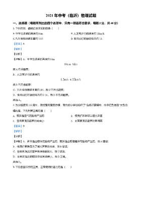 精品解析:2021年山东省临沂市中考物理真题(解析版).doc