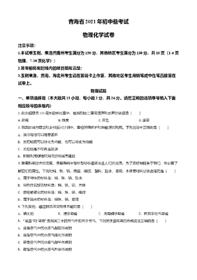 精品解析:2021年青海省中考物理试题(原卷版).doc