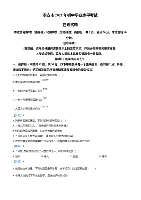 精品解析:2021年山东省泰安市中考物理试题.doc