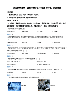 精品解析:2021年山东省菏泽市中考物理试题.doc