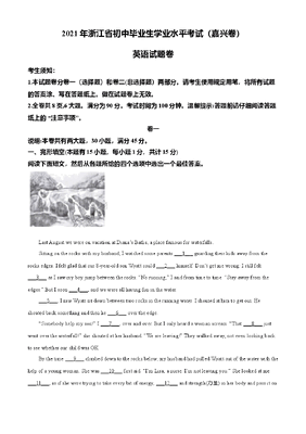 精品解析:浙江省嘉兴市2021年中考英语试题(原卷版).doc