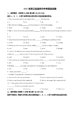 精品解析:浙江省温州市2021年中考英语试题(解析版).doc