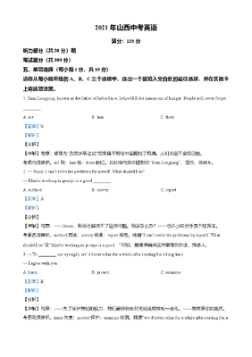 精品解析:山西省2021年中考英语试题(解析版).doc
