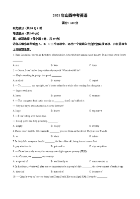 精品解析:山西省2021年中考英语试题(原卷版).doc