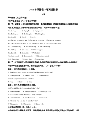 精品解析:陕西省2021年中考英语试题(原卷版).doc