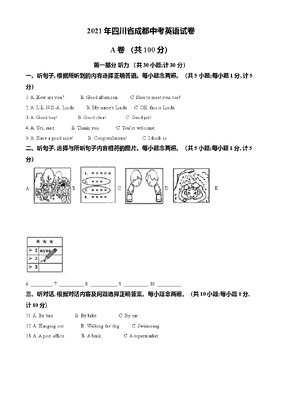 精品解析:四川省成都市2021年中考英语试题(原卷版).doc