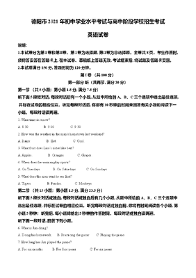 精品解析:四川省德阳市2021年中考英语试题(原卷版).doc