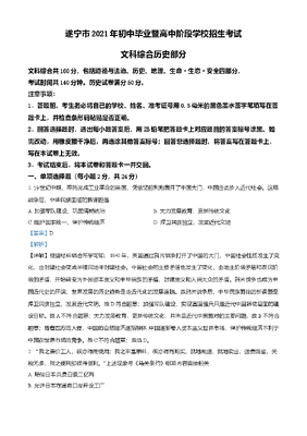 精品解析:2021年四川省遂宁市中考历史试题(解析版).doc