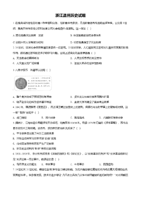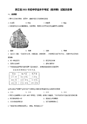 精品解析:2021年浙江省温州市中考历史试题(原卷版).doc