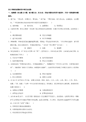 精品解析:2021年湖北省荆州市中考历史真题(word,解析版).docx