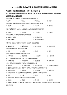 精品解析:2021年黑龙江省绥化市中考历史试题(原卷版).doc