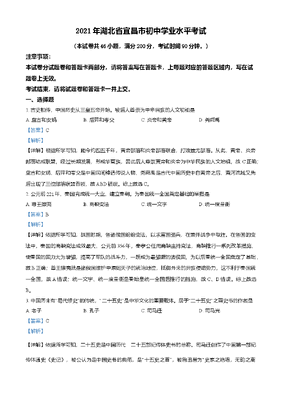 精品解析:2021年湖北省宜昌市中考历史试题(解析版).doc