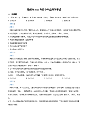 精品解析:2021年湖北省随州市中考历史试题(解析版).doc