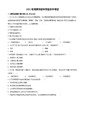 精品解析:2021年湖南省湘潭市中考历史试题(原卷版).doc