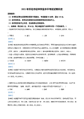 精品解析:2021年湖南省怀化市中考历史试题(解析版).doc