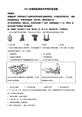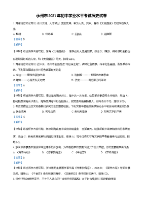 精品解析:2021年湖南省永州市中考历史试题(解析版).doc