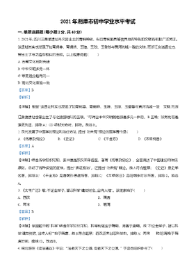 精品解析:2021年湖南省湘潭市中考历史试题(解析版).doc