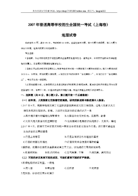 2007年上海市高中毕业统一学业考试地理试卷(答案版).doc