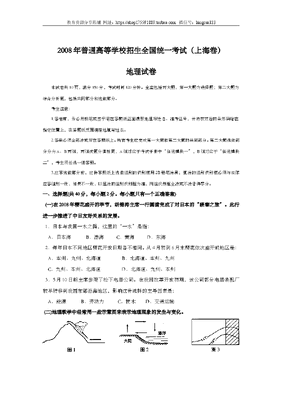 2008年上海市高中毕业统一学业考试地理试卷(答案版).doc