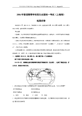 2006年上海市高中毕业统一学业考试地理试卷(答案版).doc