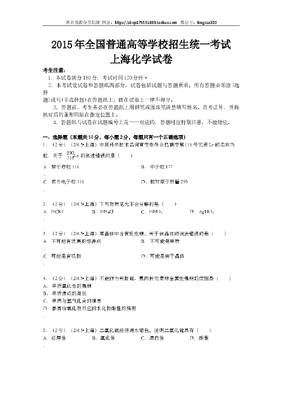 2015年上海市高中毕业统一学业考试化学试卷(原卷版).doc