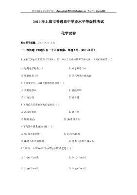 2019年上海市高中毕业统一学业考试化学试卷(原卷版).doc